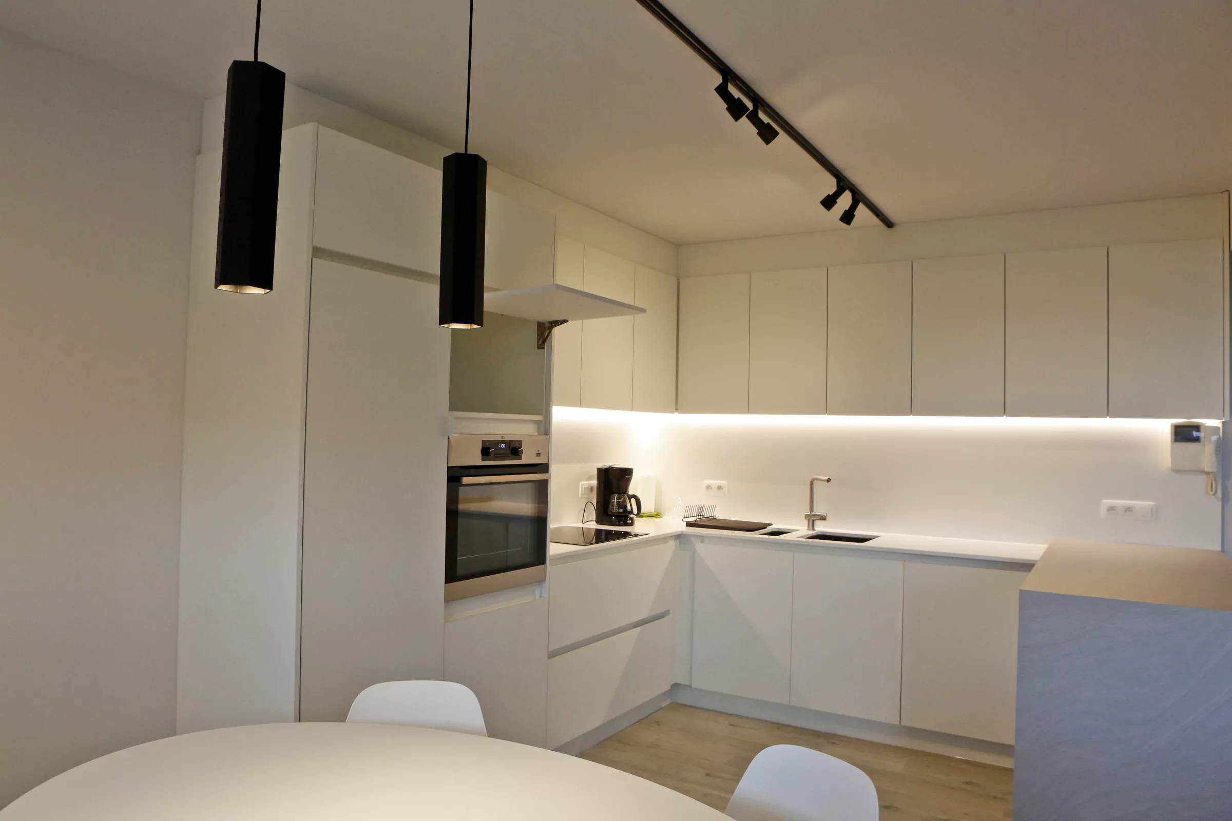 Ontdek onze totaalrenovatie van een gedateerd appartement in Nieuwpoort. We hebben het volledige appartement vernieuwd met nieuwe elektriciteit, loodgieterij, vloeren, badkamer, keuken en meer.